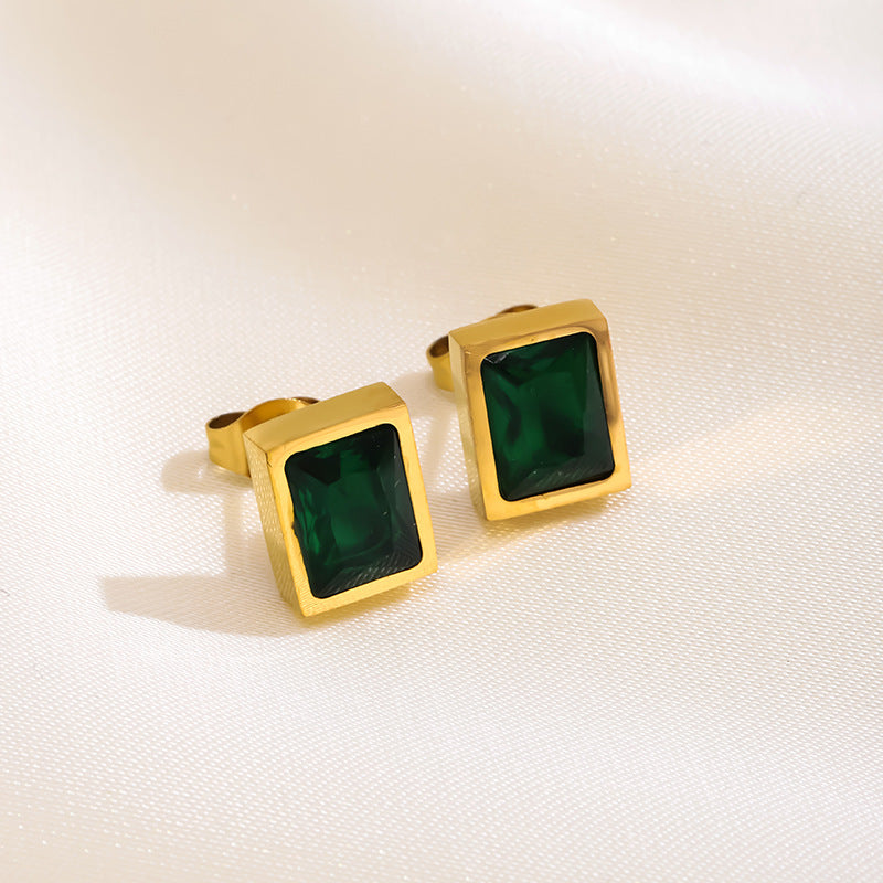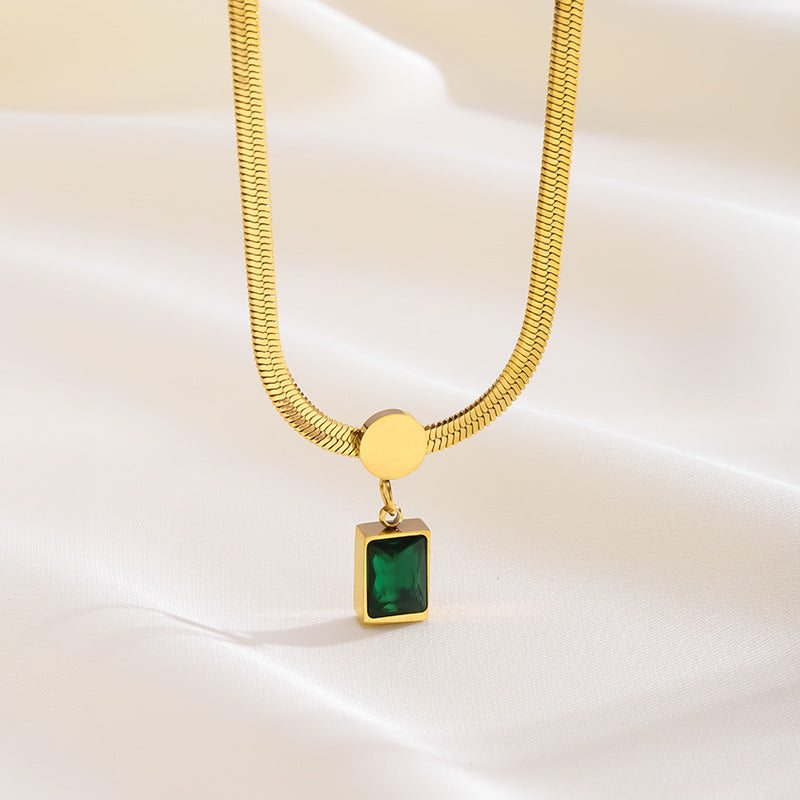 Green Square Zircon Pendant Snake Chain Fashion Retro Earring Set