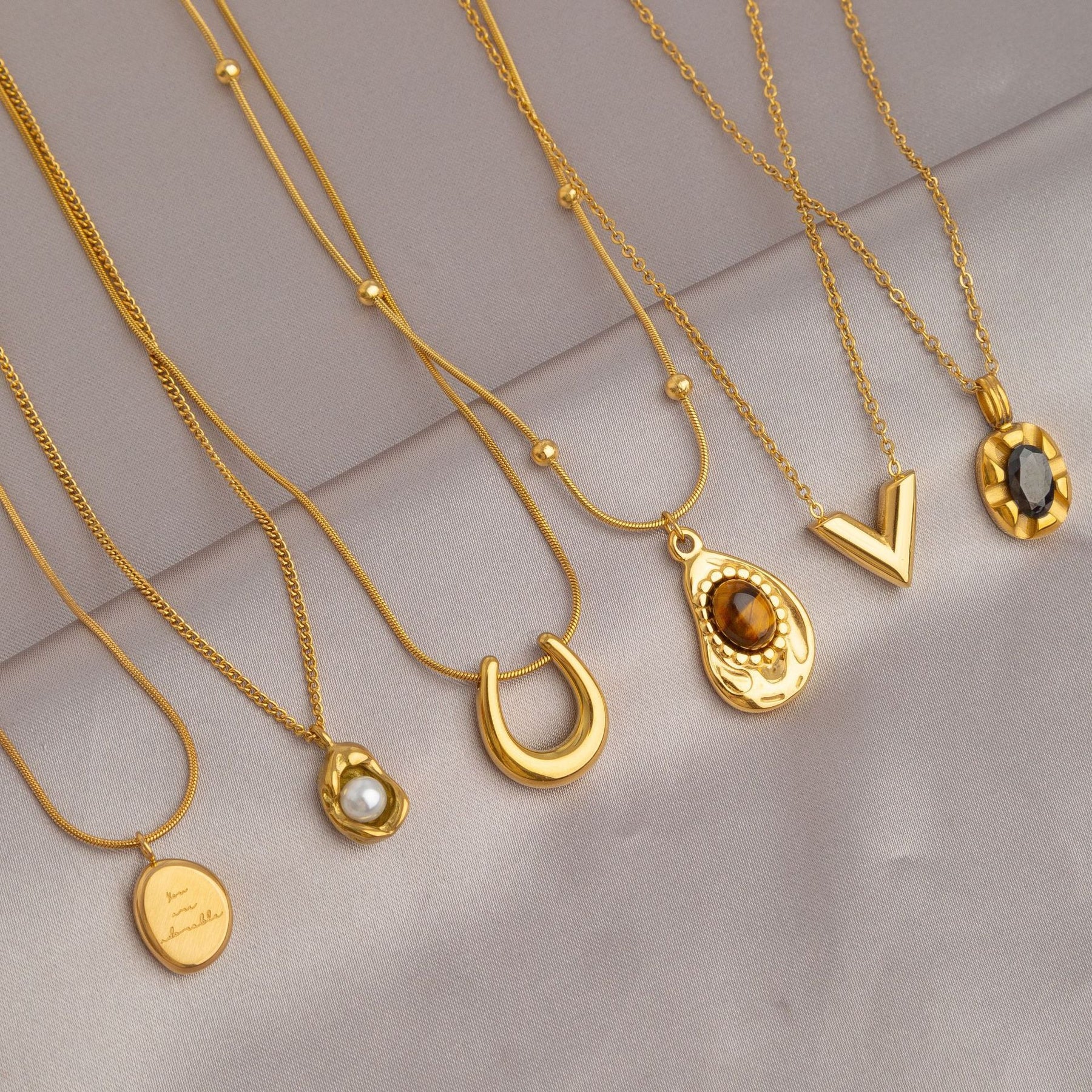 Color: gold U-shaped necklace, gold V-shaped female necklace, gold irregular pearl, gold oval beanie necklace, gold beanie pearl necklace, gold black and white double-sided Love necklace, gold black onyx necklace, gold Tigereye necklace, gold Roman numeral necklace, gold double ring letter D necklace, Gold Peach Blossom imprint necklace, gold ball stitching necklace, gold rose Pearl double layer necklace, gold opal necklace, gold butterfly fritillary necklace, gold Black Square necklace, gold square letter necklace, gold single diamond necklace, gold V-shaped tassel necklace, Gold H letter shell necklace, gold letter H smiley face fritillary necklace, gold square smiley face fritillary necklace, gold Mobius necklace, gold titanium steel small square necklace, gold heart shaped necklace, gold small square necklace, gold green water drop necklace, gold mirror rose necklace, gold U-shaped pearl necklace, gold Pisces ball necklace, gold Black for Men letter necklace, gold rich gianduja Noisettes necklace, gold single pearl necklace