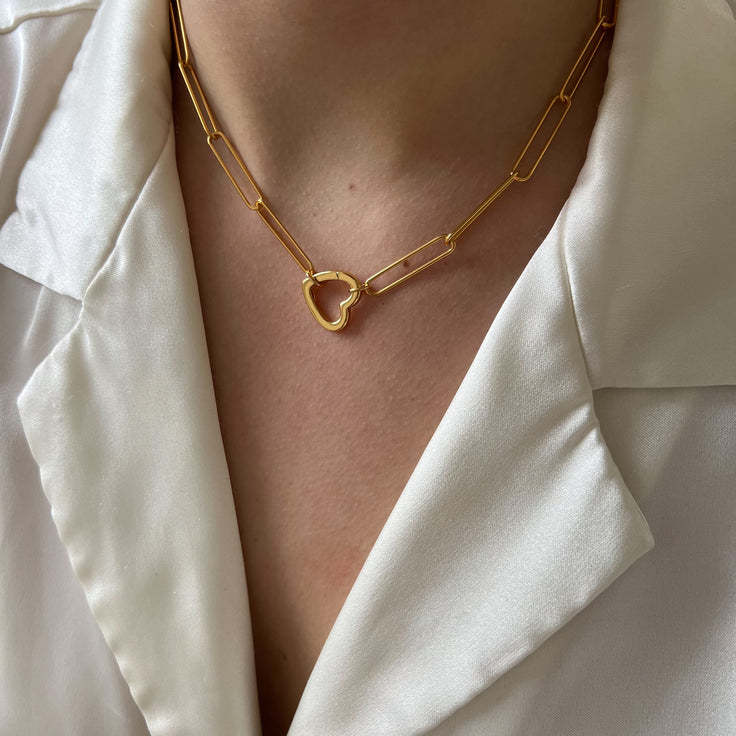 Open End Ring Necklace Heart Round Pendant