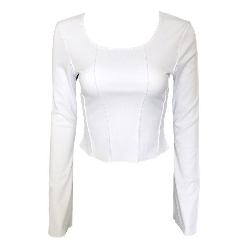 Square-neck Fitted Long-sleeve Knit Top T-shirt