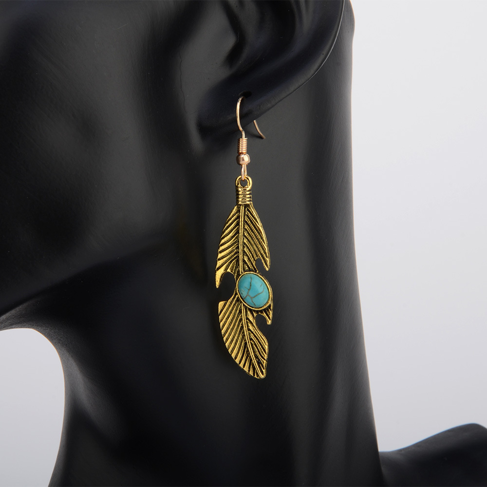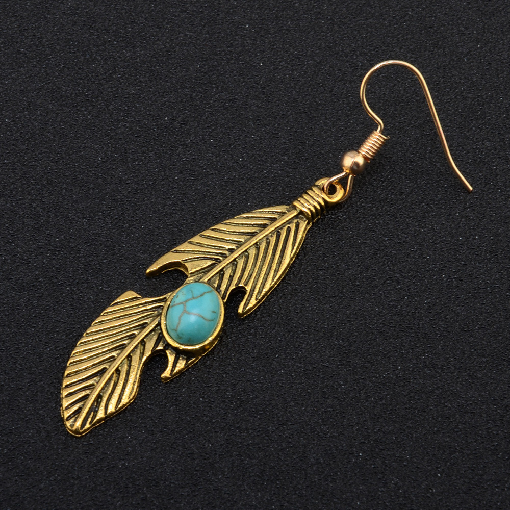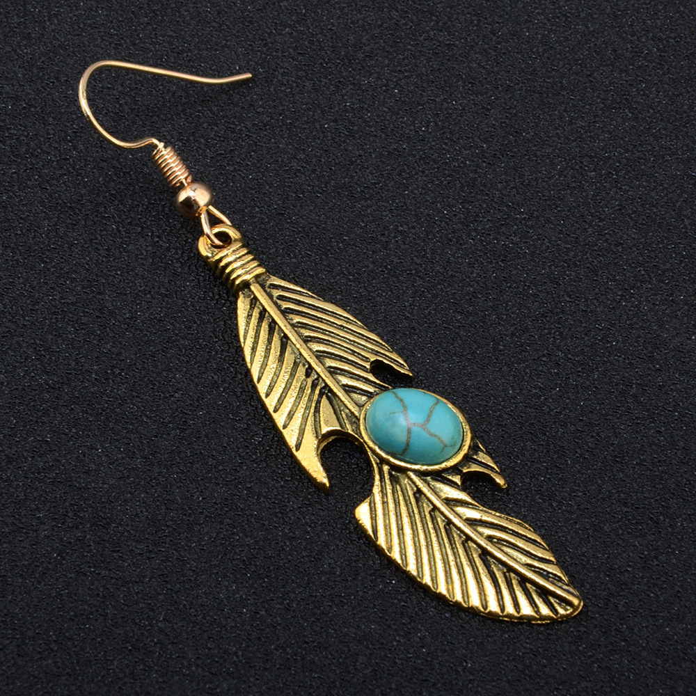 Vintage Feather Inlaid With Turquoise Leaf Pattern