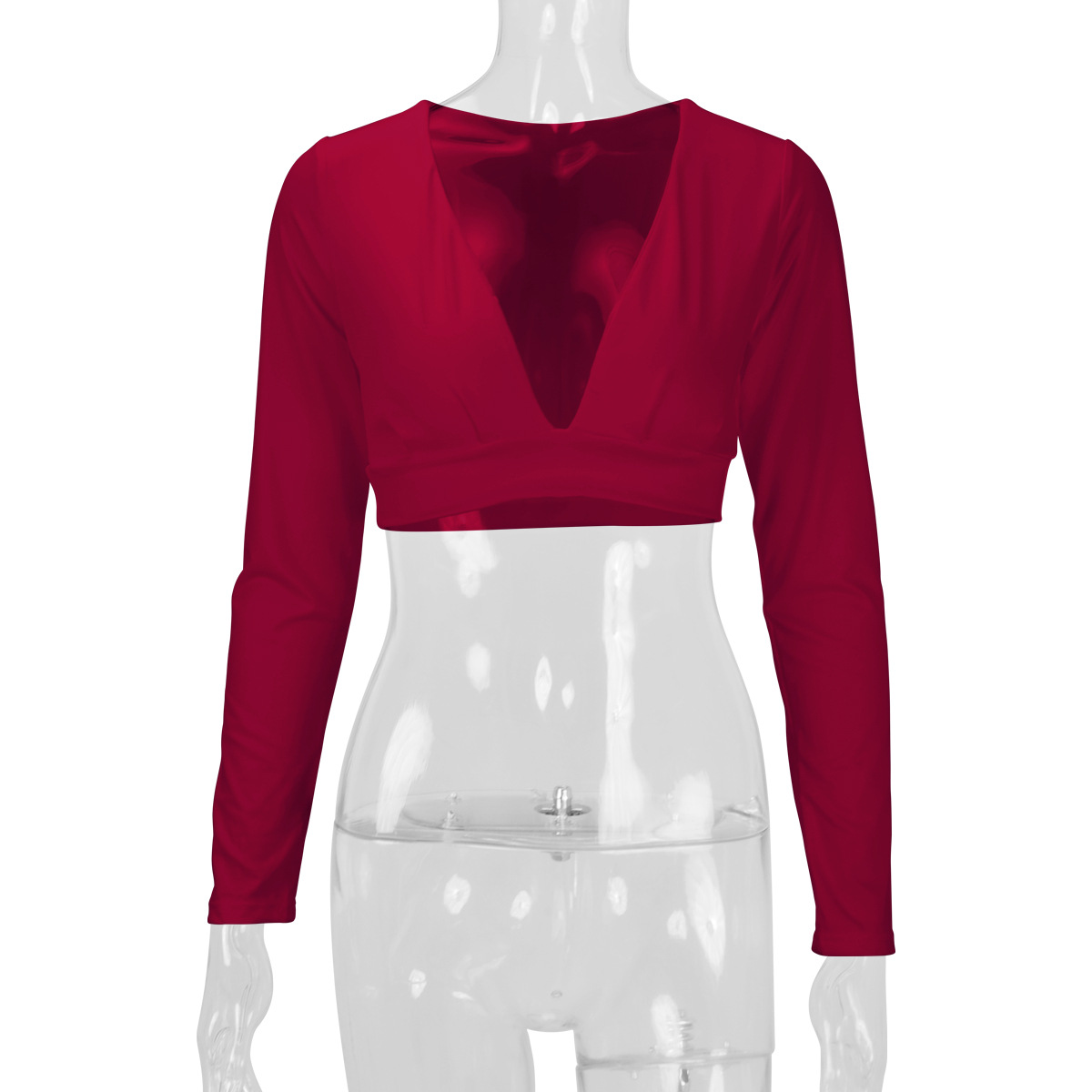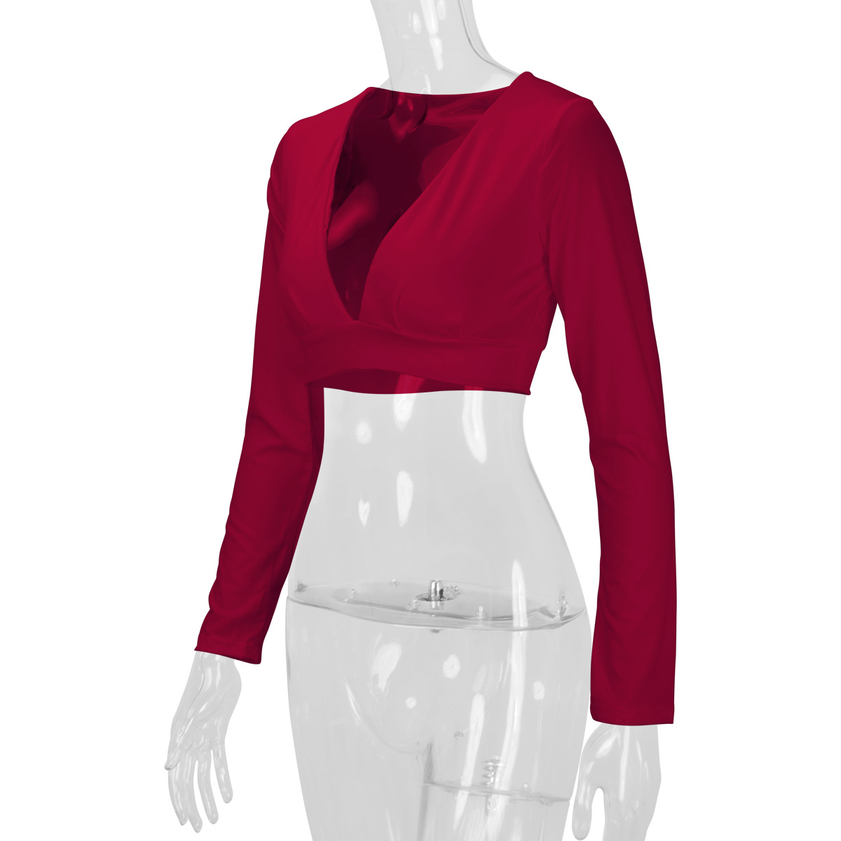 Women's Top Cross-Border Long Sleeve Slim Fit V-Neck Sexy Top