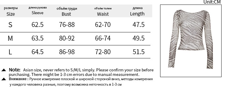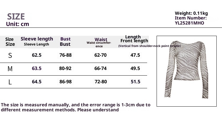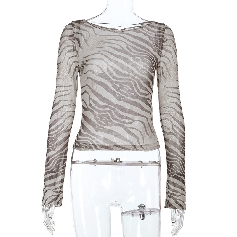 Zebra Print Long-sleeved Top Women's Sexy Sheer